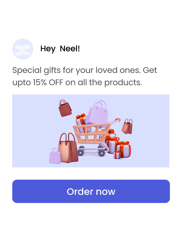 Send Personalized & localized push/ web notifications, email, SMS, WhatsApp & In-app messages at the user’s preferred time.